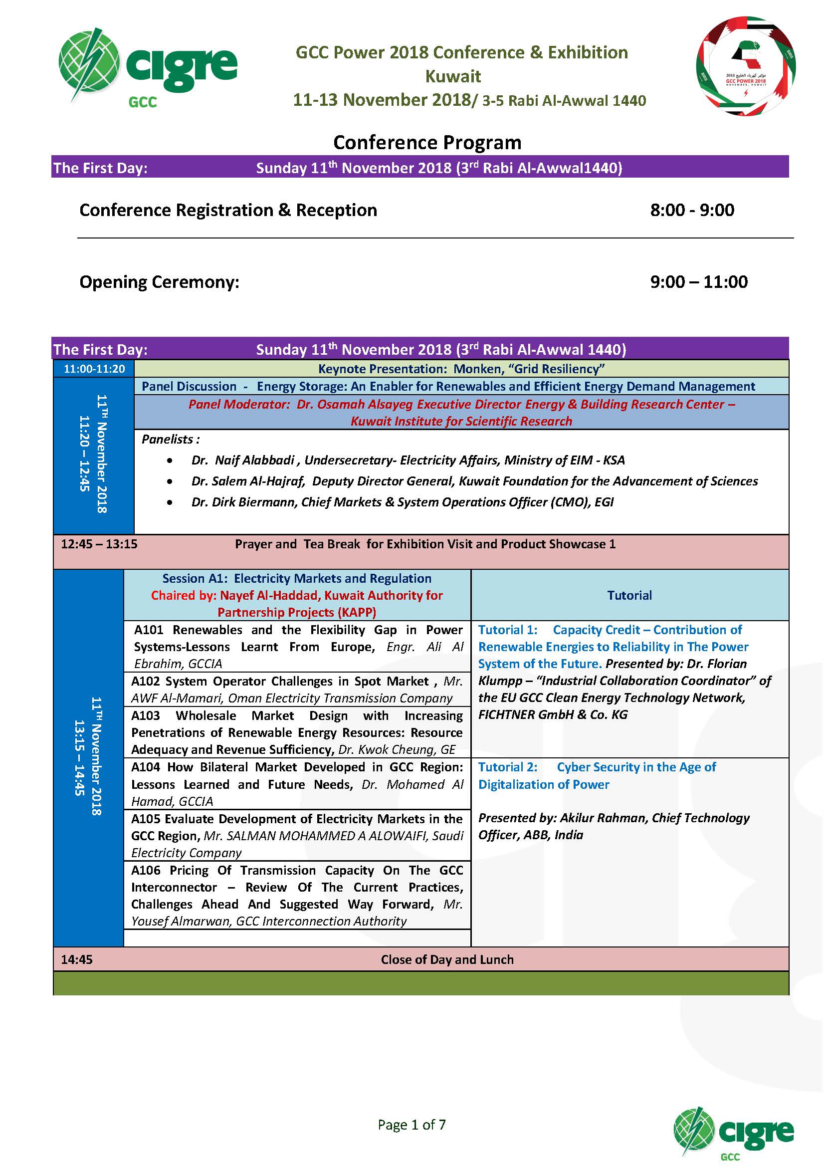 GCC POWER 2018 Conference Schedule