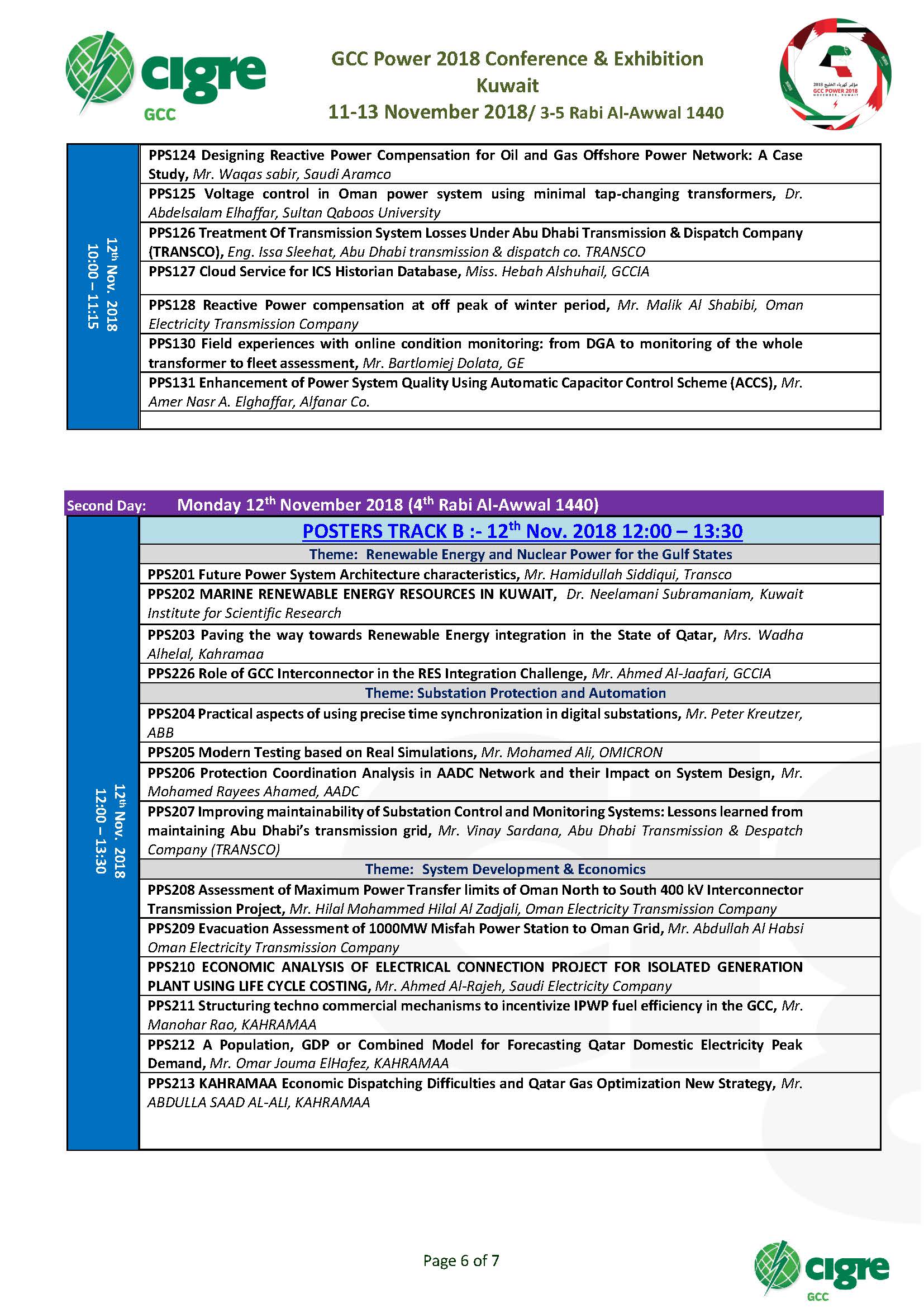 GCC POWER 2018 Conference Schedule